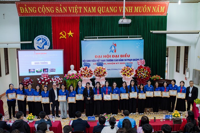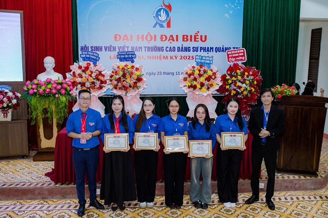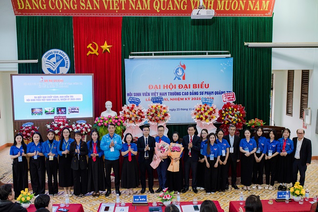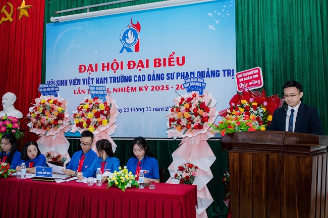 Chiều ngày 23/11/2025, Đại hội Đại biểu Hội Sinh viên Việt Nam Trường CĐSP Quảng Trị lần thứ XI, nhiệm kỳ 2025 – 2028 đã diễn ra thành công tốt đẹp, thể hiện ý chí, nguyện vọng và khát vọng cống hiến của tuổi trẻ nhà trường. Với khẩu hiệu hành động: “Sinh viên trường Cao đẳng Sư phạm Quảng Trị Bản lĩnh – Sáng tạo – Hội nhập – Khát vọng phát triển”. Đại hội đã mở ra một giai đoạn phát triển mới, hứa hẹn những bước đột phá mạnh mẽ, đặc biệt trong việc gắn kết hoạt động sinh viên với các mục tiêu chiến lược của nhà trường và của đất nước.