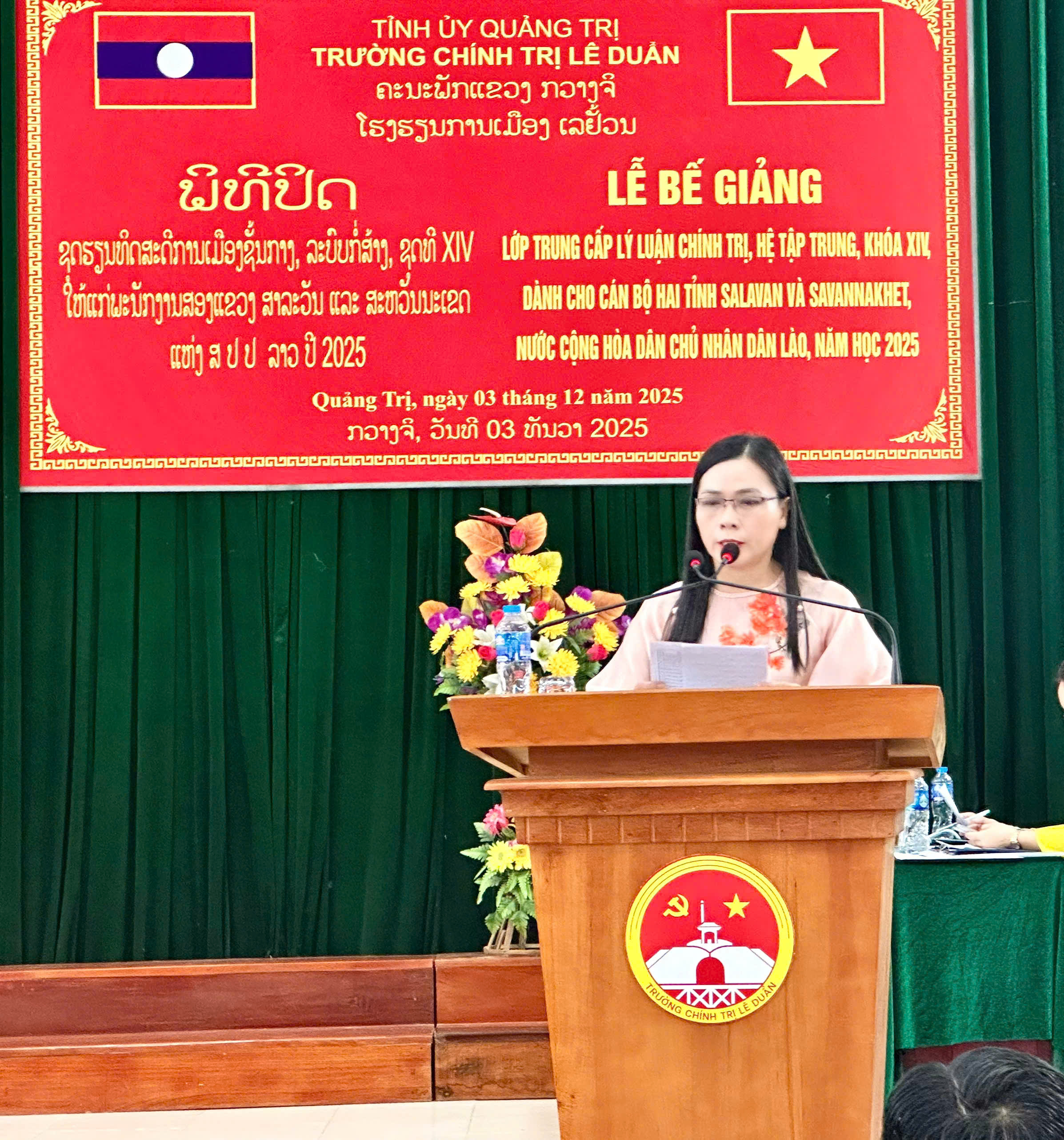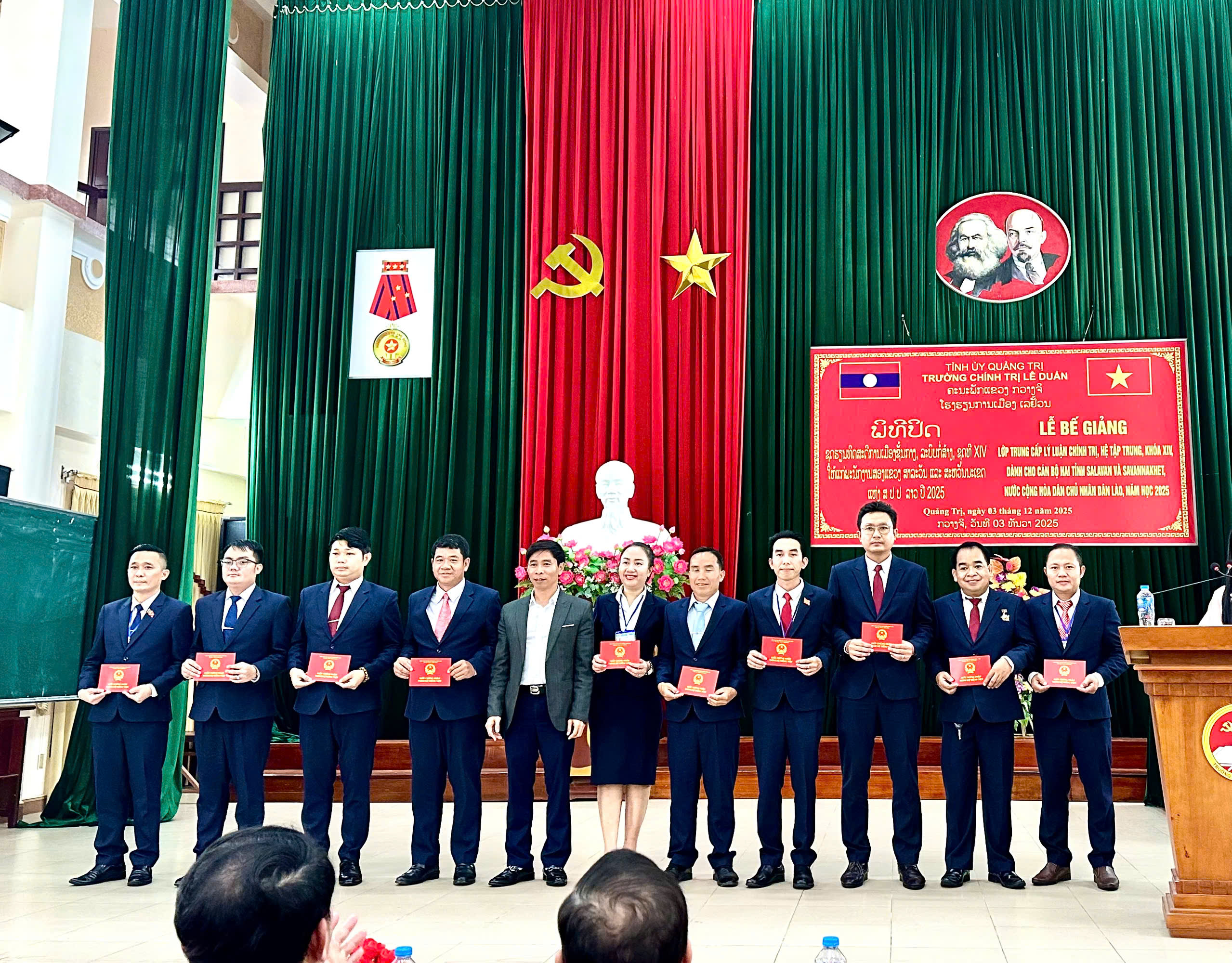 Ngày 03/12/2025, Trường Cao đẳng Sư phạm Quảng Trị đã tổ chức tổng kết khóa bồi dưỡng tiếng Việt cho cán bộ  02 tỉnh Savanakhet và Salavan (nước CHDCND Lào) đang theo học Trung cấp Lý luận chính trị - Hành chính tại trường Chính trị Lê Duẩn- tỉnh Quảng Trị