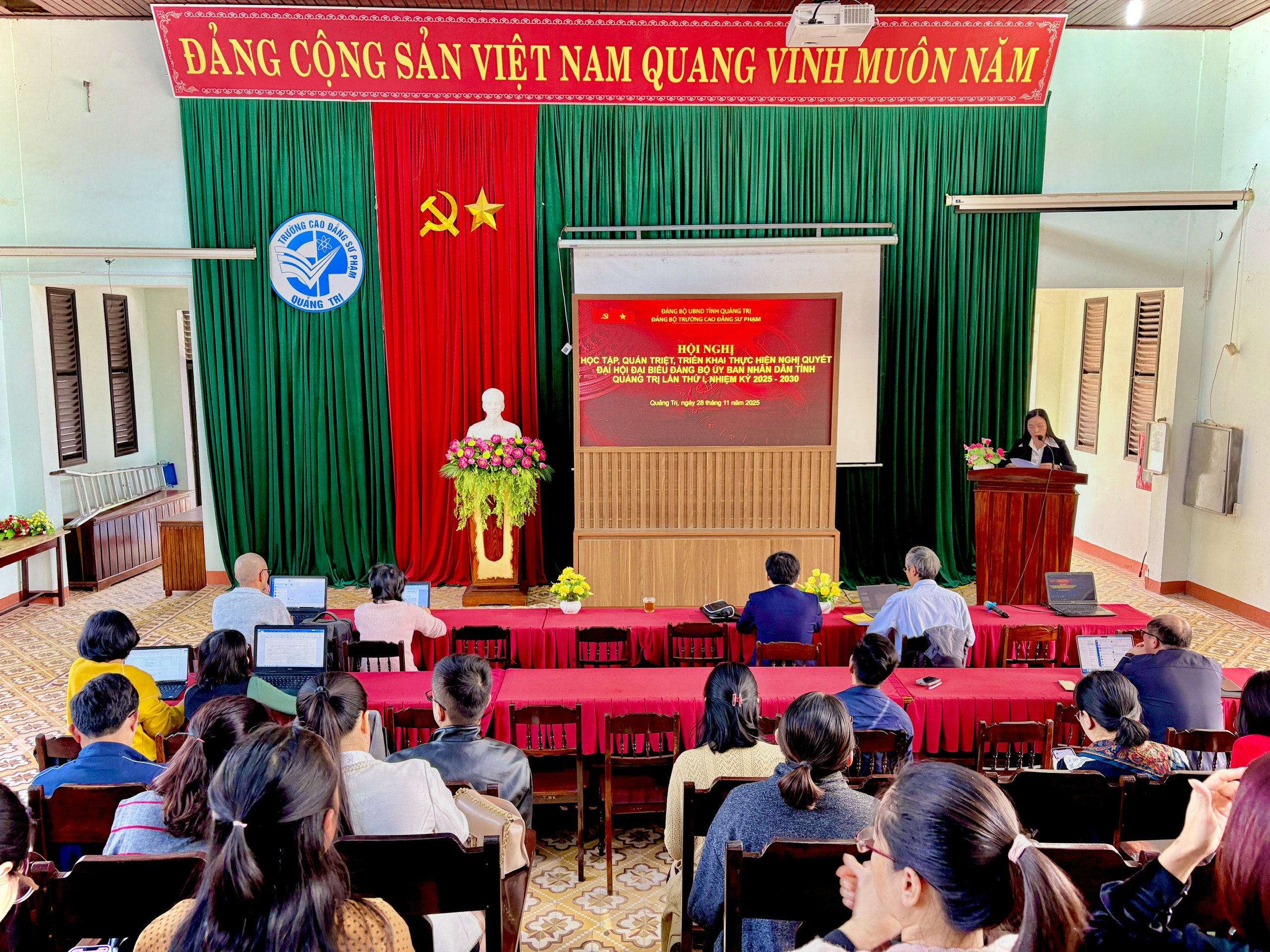 Chiều ngày 28/11/2025 , Đảng bộ trường CĐSP Quảng Trị tổ chức hội nghị quán triệt triển khai Nghị quyết Đại hội đại biểu Đảng bộ UBND Tỉnh lần thứ nhất, nhiệm kỳ 2025-2030. Tham dự Hội nghị có các đồng chí trong BTV, BCH Đảng uỷ, các đồng chí đảng viên và CB, GV, VC và người lao động trong toàn trường.