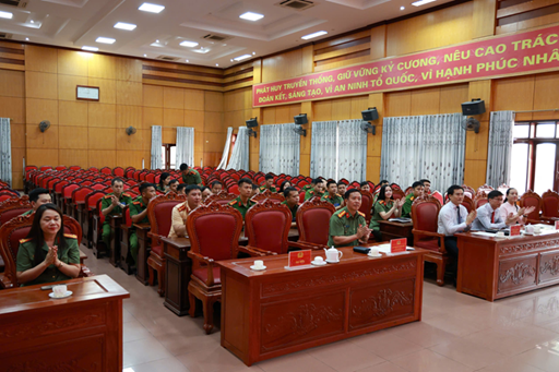 Đồng chí Đại tá Nguyễn Trung Kiên, Phó Bí thư đảng ủy, Phó Giám đốc Công an tỉnh phát biểu quán triệt tinh thần, trách nhiệm cho cán bộ chiến sĩ tham gia khóa bồi dưỡng tiếng Lào