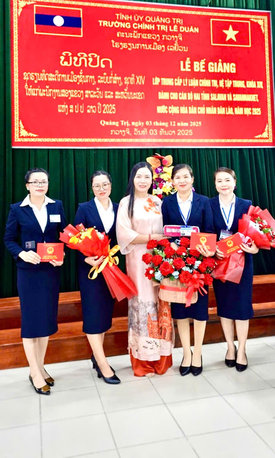 Ngày 03/12/2025, Trường Cao đẳng Sư phạm Quảng Trị đã tổ chức tổng kết khóa bồi dưỡng tiếng Việt cho cán bộ 02 tỉnh Savanakhet và Salavan (nước CHDCND Lào) đang theo học Trung cấp Lý luận chính trị - Hành chính tại trường Chính trị Lê Duẩn- tỉnh Quảng Trị